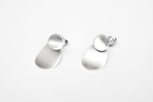 Curve Shaped earrings are made of sterling silver with an understanding white matte finish. 0.86" (22mm) long and 0.5" (12.5mm) wide, two curved discs parts and  post style.