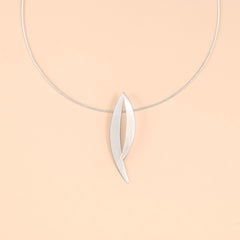 The Flame Crossing pendant is made of sterling silver with an understated matte finish on a 17" 1mm omega chain. The Pendant is 2.16" (55mm) long and 0.6" (15 mm) wide. The pendant is an abstract design with one silver...