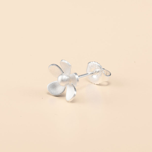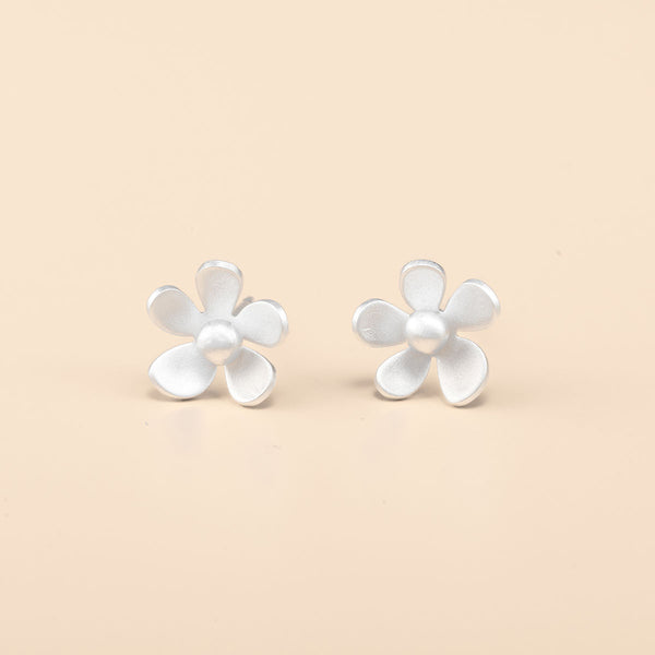 This simple and feminine Forget Me Not post-style earrings are made of sterling silver with an understated matte finish. At 9mm in diameter, it is great for everyday wear.