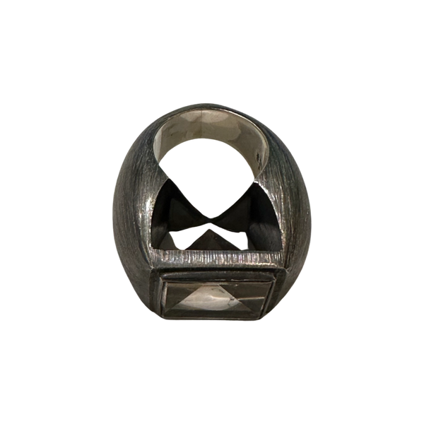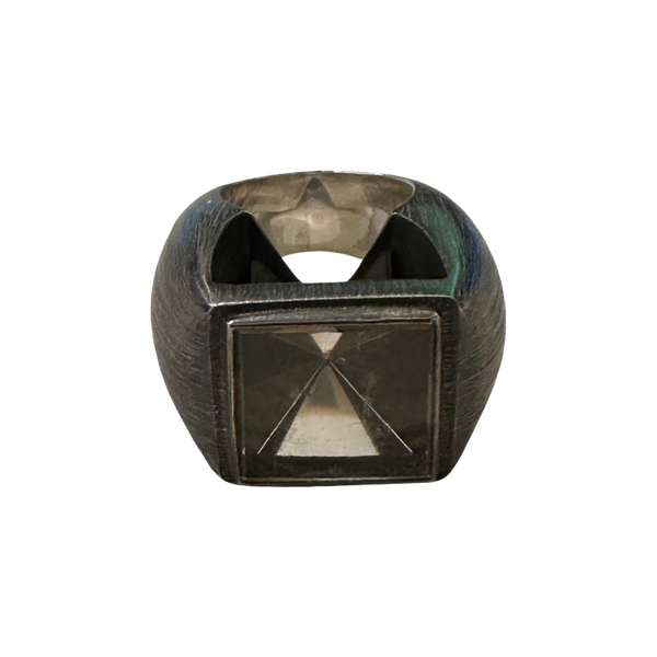 Inverted Pyramid Ring sterling silver textured ring with inverted pyramid crystal bezel set on the top, handmade light brown natural crystal