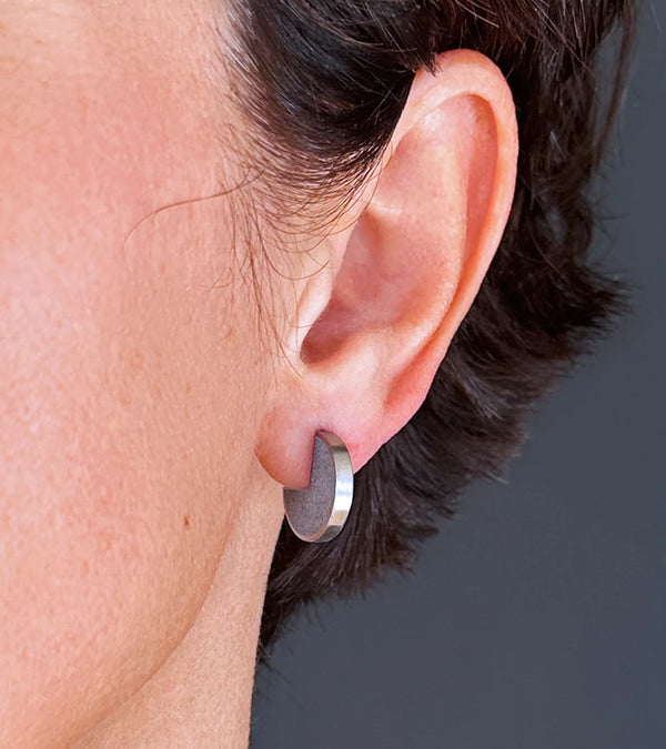 Itten2 Concrete Studs marry minimalist design with material innovation. Crafted from stainless steel and concrete infused with diamond dust, these geometric earrings embody Bauhaus principles through their balanced composition. Named after Johannes Itten's foundational work in color theory and...