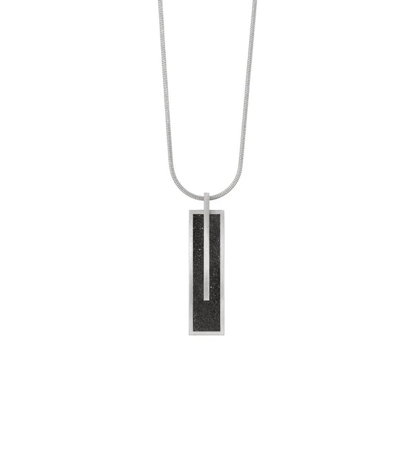 A striking blend of minimalism and meaning, the Memento Rectangle Pendant is crafted from a hand-cast concrete core encrusted with shimmering diamond dust, encased in a sleek, geometric stainless steel frame. Suspended from a polished stainless steel snake chain, its...