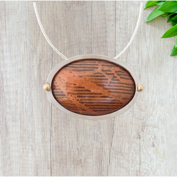 Oval tree medallion, enamel, silver, gold details, 2mm omega chain 18"