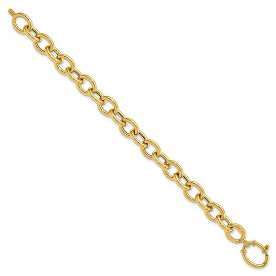 Expertly fashioned from 14k yellow gold, this statement bracelet features polished fancy oval links, designed to elevate any outfit. This luxurious bracelet is made in Italy and measures 7.5 inches in length and 11 mm in width. It has an...