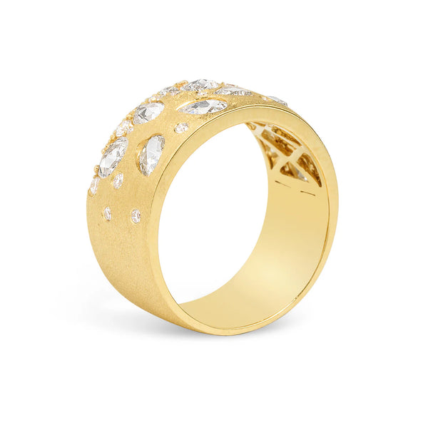 Rose Cut Diamond Confetti Cigar Band in Yellow Gold