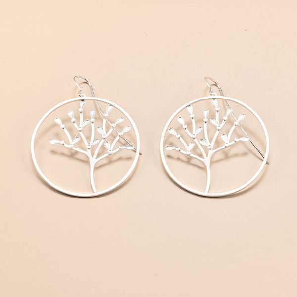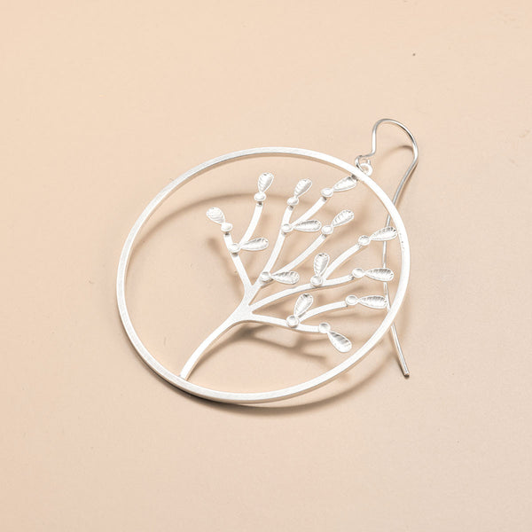 These statement earrings from Kelim Jewelry feature a pair of tree branch designs with delicate negative space, suspended in a 30 mm hoop attached to sterling silver ear wires. Measuring 2.25" in length including the ear wire, they are lightweight...