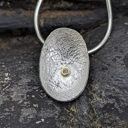 Delicately crafted as part of the new Petal Range, the Silver Petal Pendant with Diamond captures the softness and beauty of nature through textured, reticulated silver petals. Each pendant features a single hand-formed petal, textured with care to evoke organic movement and subtle tactility.