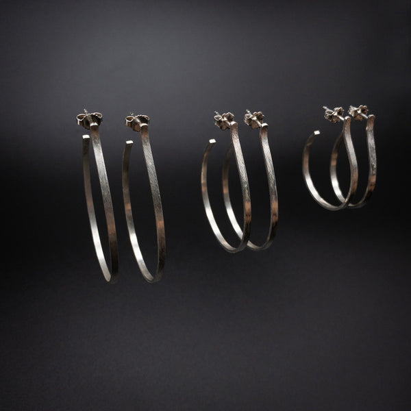 Small sterling silver hoops are made of silver wire of 2mm wide and 1mm thick; Each earring is 1.45" long, 1" wide; handmade, understated look, great for everyday wear or a statement piece.