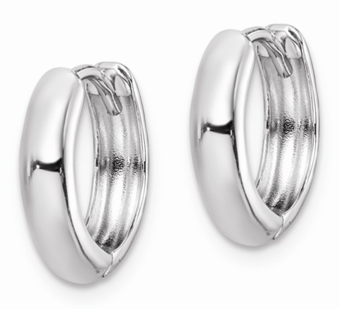 These timeless sterling silver Rhodium Polished Hinged Hoop Earrings are crafted with 925 sterling silver, plated with rhodium that gives a polished finish. Each earring measures 13mm long with a thickness of 3mm. half-round shape with a soft silhouette. A perfect choice for everyday wear or adding an elegance and subtle touch to any look.